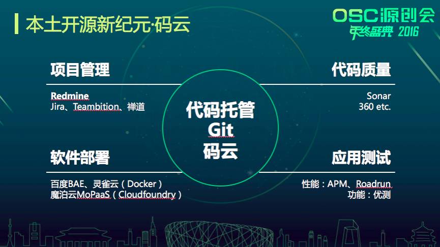 迄今,我们为码云丰富了许多功能。我们接入了Redmine做项目管理,我们接入了PaaS实现自动部署,我们接入了优测,让大家来自动做测试。我们甚至接入了360。特别有意思的是,刚上线360的时候被社区用户喷了半天。可今天看来,大家还是认同这个强大的功能,都在使用。在这里我承诺大家,360宣布在码云上收费的那天。一定是我们跟它做了断的时候!